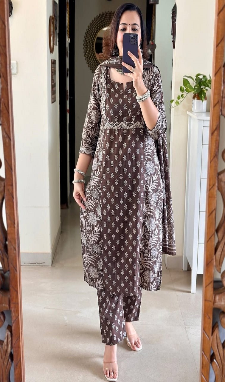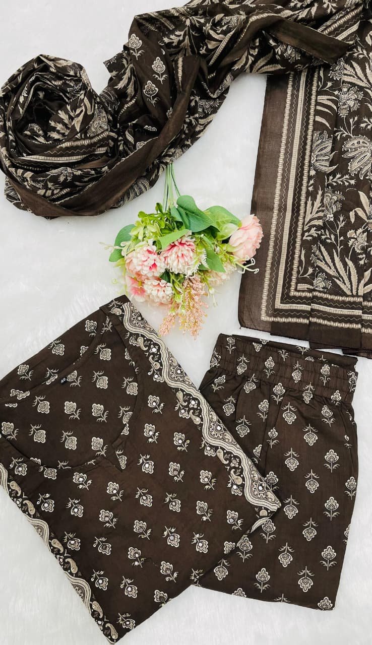 Designer V Neck Floral Print Cotton Suit