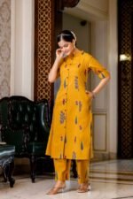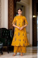 Launching Designer Coord set in Aline kurti with side slit pattern paired with Ankle length pant in Fine Cotton Slub giving perfect outfit and deliberate choice about your look…..