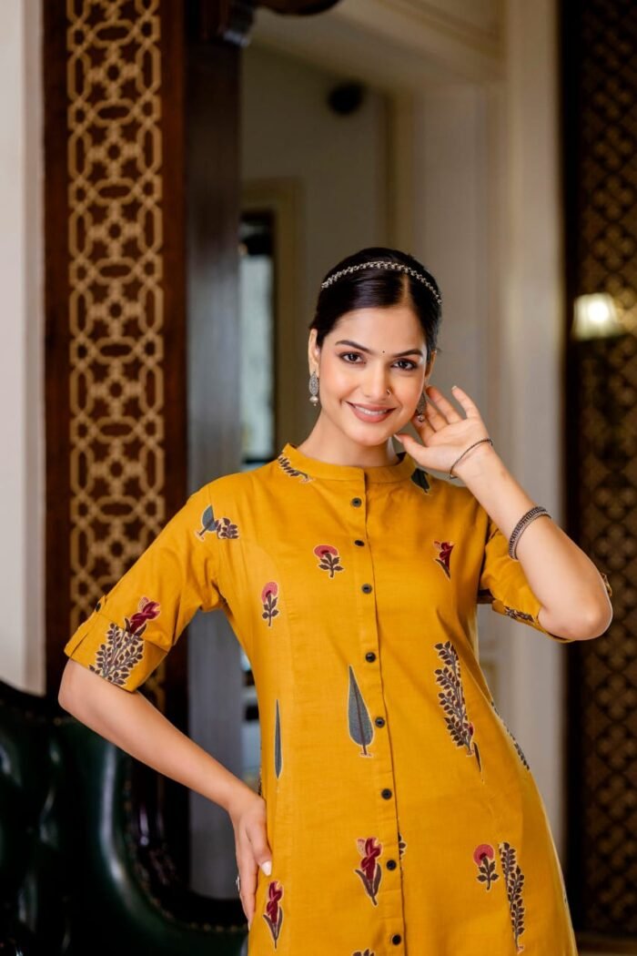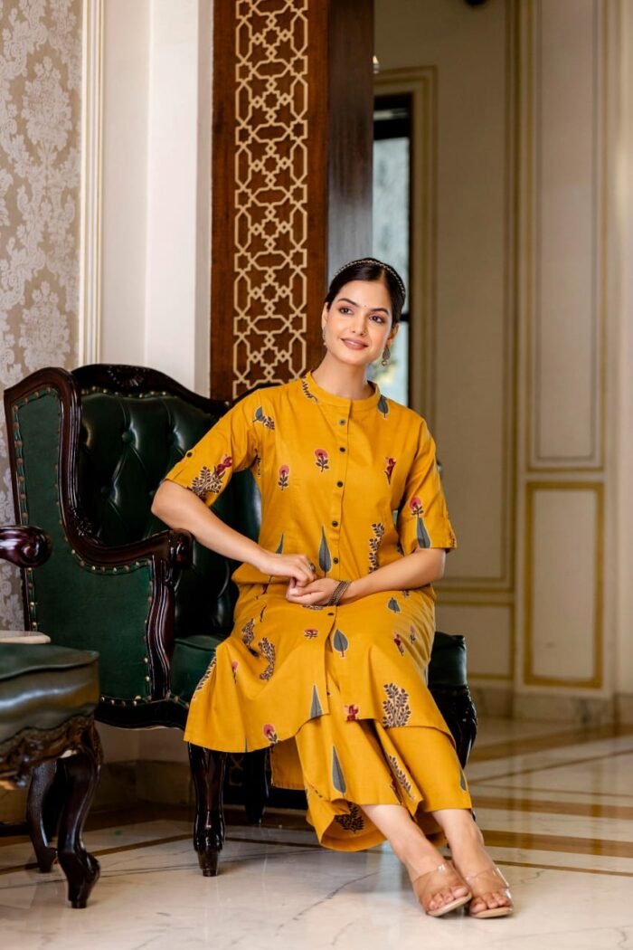 Launching Designer Coord set in Aline kurti with side slit pattern paired with Ankle length pant in Fine Cotton Slub giving perfect outfit and deliberate choice about your look…..
