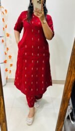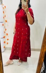 Step out in style with this Designer Coord Set, featuring an A-line kurti with side slit pattern paired with ankle-length pants in fine cotton.