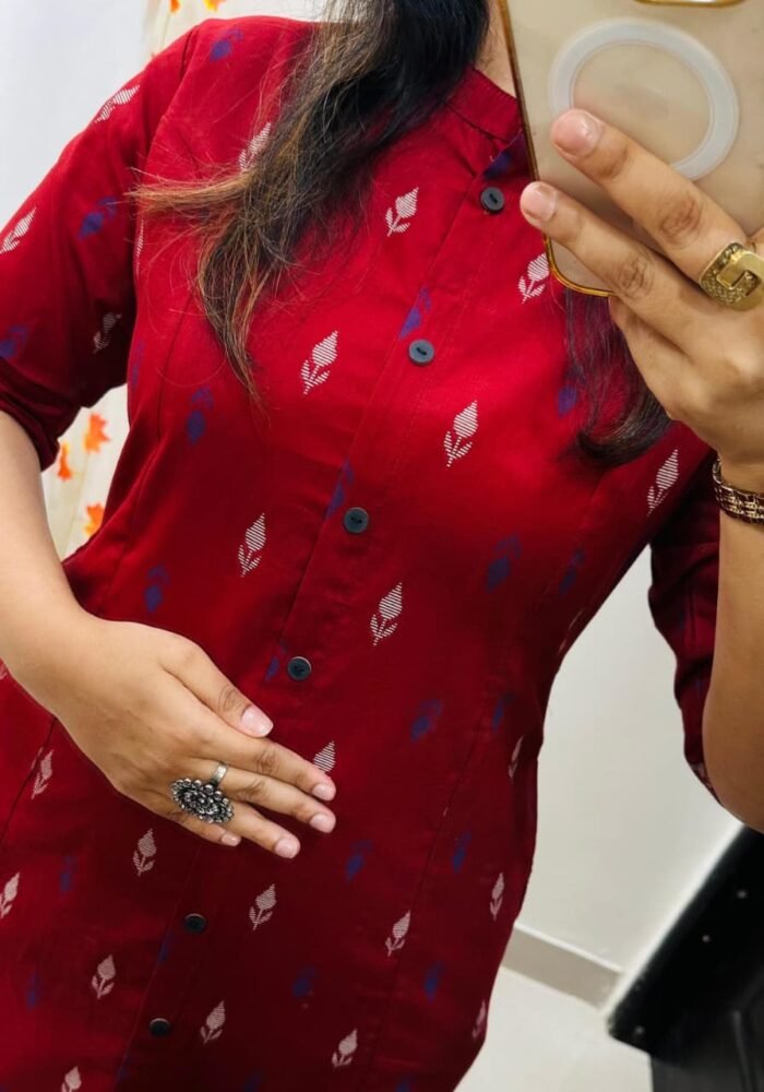 Step out in style with this Designer Coord Set, featuring an A-line kurti with side slit pattern paired with ankle-length pants in fine cotton.