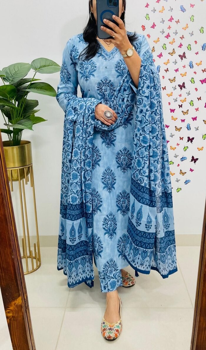 Home Salwar Suit Designer V-Neck Azrak Floral Print Cotton Suit