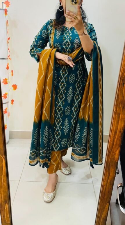 Celebrate traditional elegance with this Mughal-inspired Kurti Pant Dupatta Set.