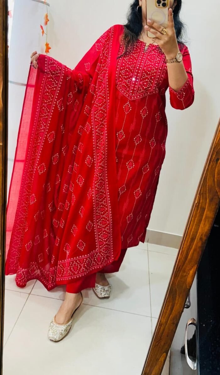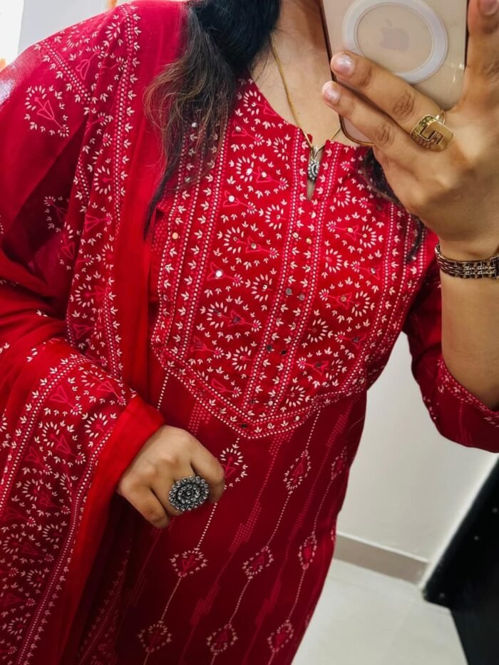 Step into elegance with this Kurti Pant Dupatta Set, crafted from premium fine cotton.
