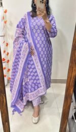 Bring elegance to your wardrobe with this Kurti Pant Dupatta Set, crafted from premium fine cotton.