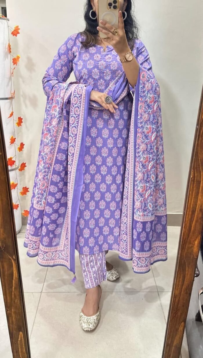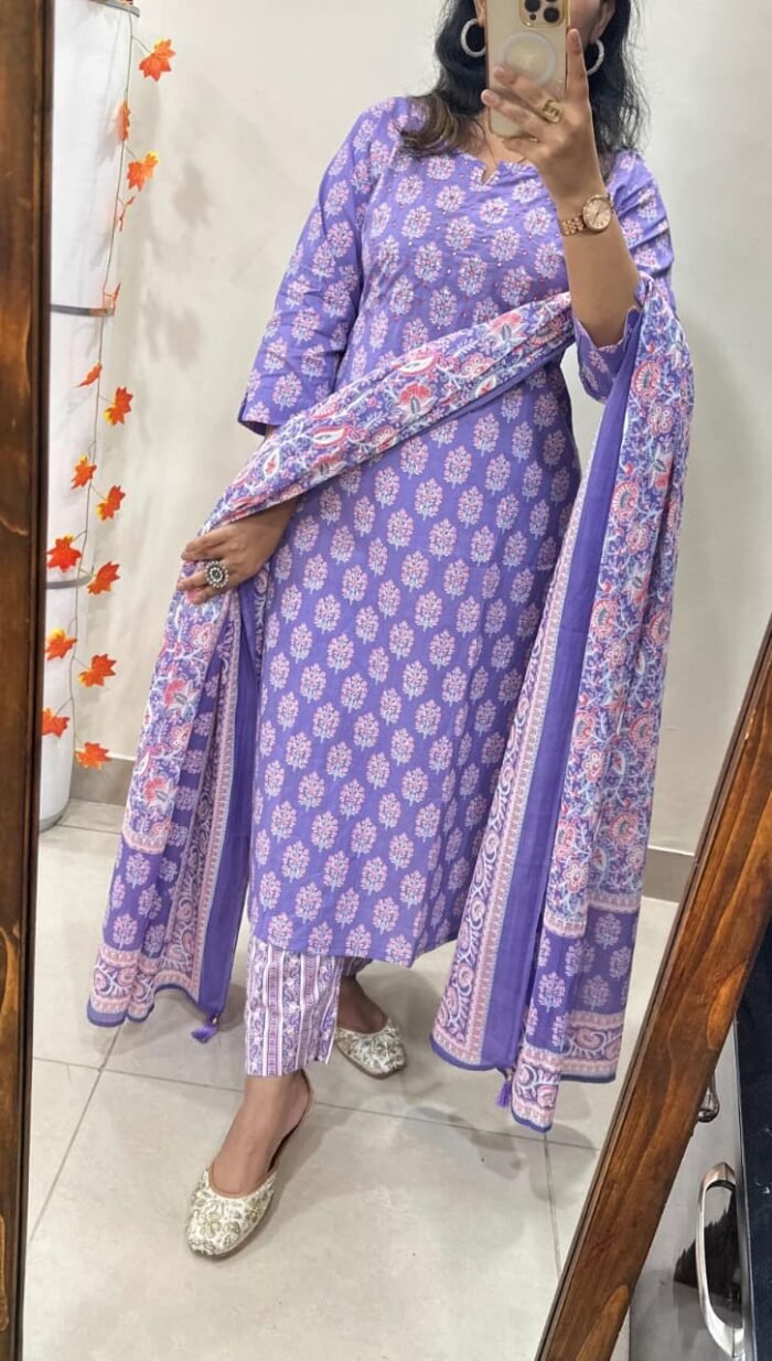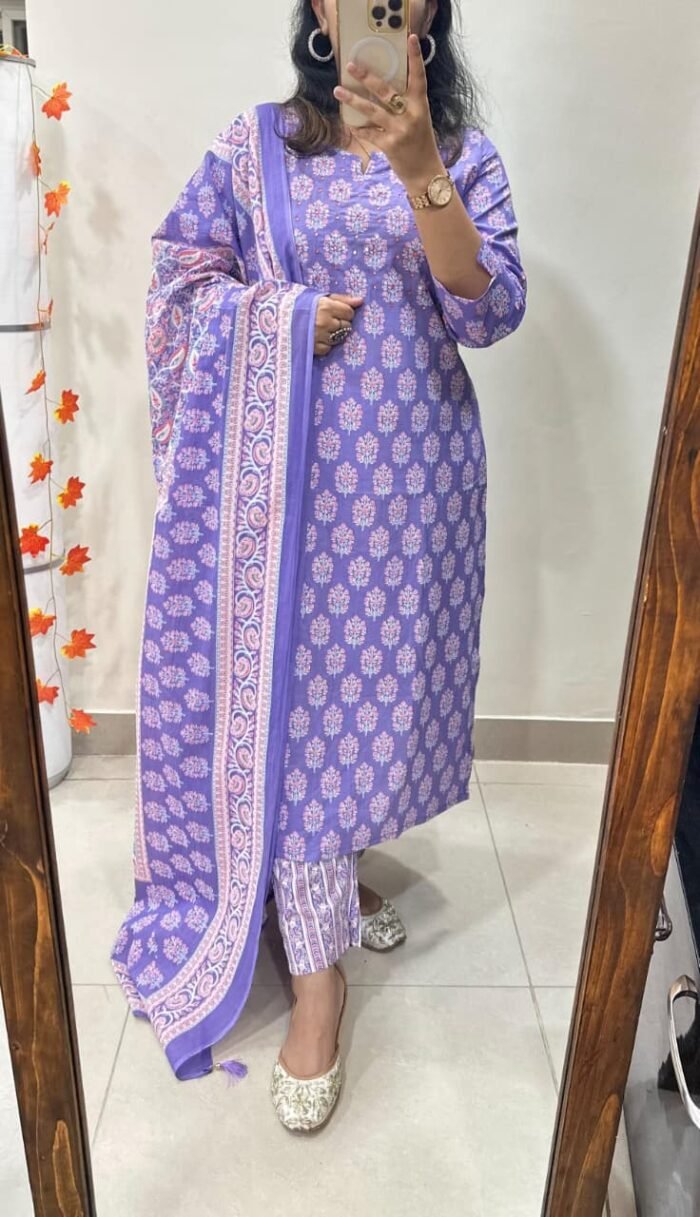 Bring elegance to your wardrobe with this Kurti Pant Dupatta Set, crafted from premium fine cotton.