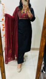Celebrate elegance with this beautiful Kurti Pant Dupatta Set, crafted from premium fine Dhabu Cotton.