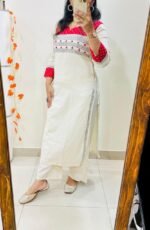 Featuring heavy original mirror work on the yoke, this outfit shines with a charming & mesmerizing appeal, perfect for festive occasions or classy everyday wear.